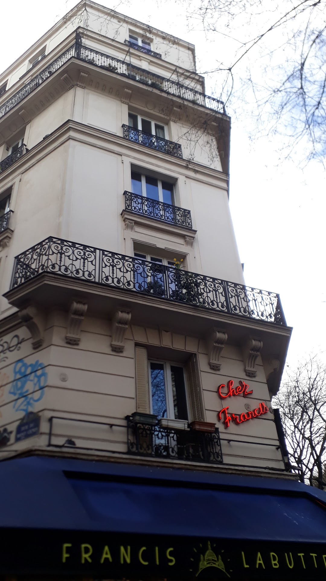 Petit resto typique au pied de la Butte où l on peut manger pour moins de 10 € café compris. En effet vs avez des tartines 9 €, croque-monsieur 8 € ou madame 8,50 €, le tout servi avec frites maison et salade. L'assiette est copieuse, on peut demander du pain et les sauces ketchup, mayo, moutarde. Chez Francis, a midi, le café est à 1 € ! Vous le rajoutez a votre plat et vous avez mangé bien et bon pour moins de 10 € ! Bien sur, vous avez d autres plats plus élaborez mais à d'autres prix, il y en a pour tous les goûts. Le vin est servi au verre si vous désirez accompagné votre plat. Francis est connu donc pensez à reserver selon la saison Personnel très sympathique, bonne ambiance.